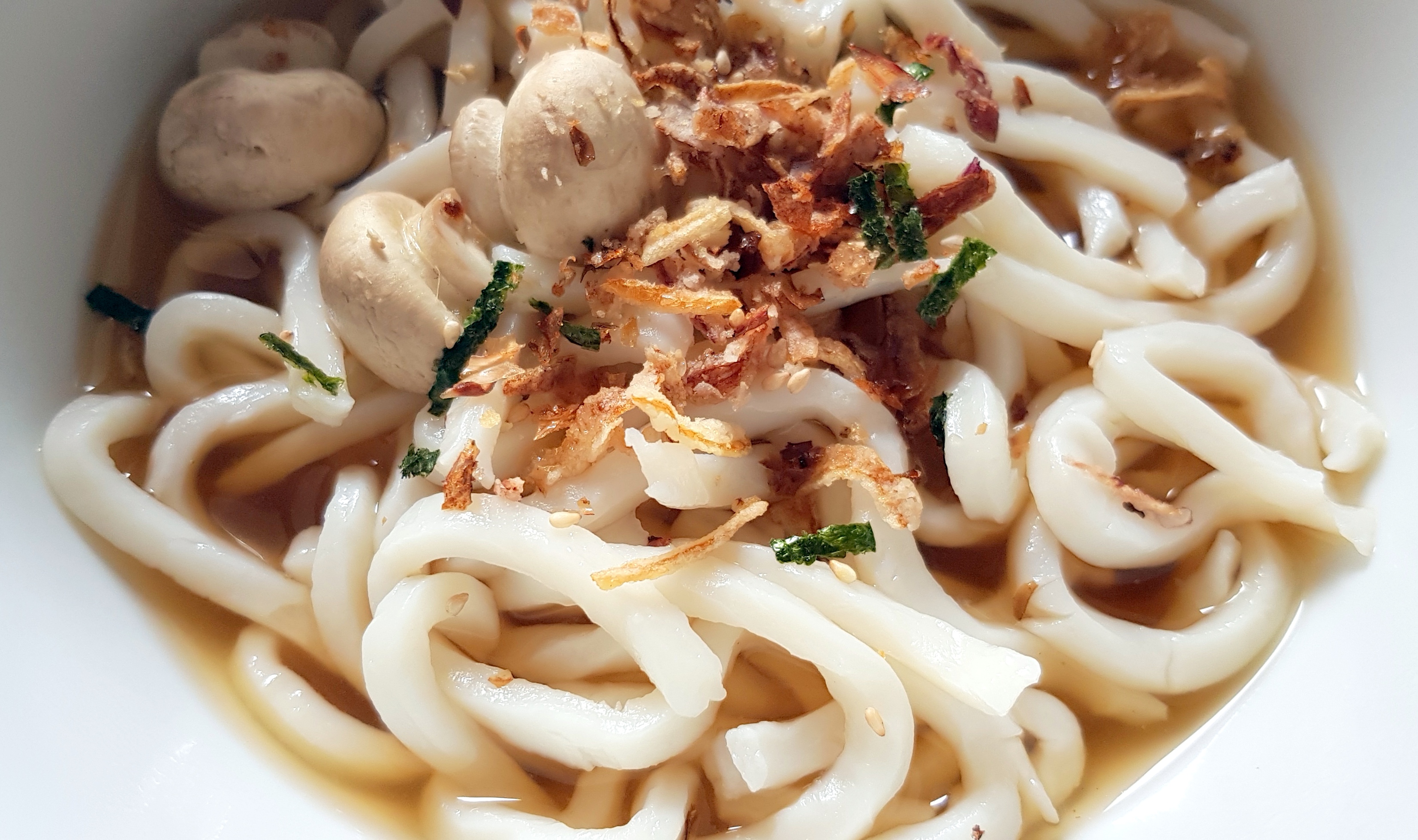 Udon noodles hail from Japan and are made from wheat flour, water and a bit of salt. They are thick and have a lovely smooth texture.