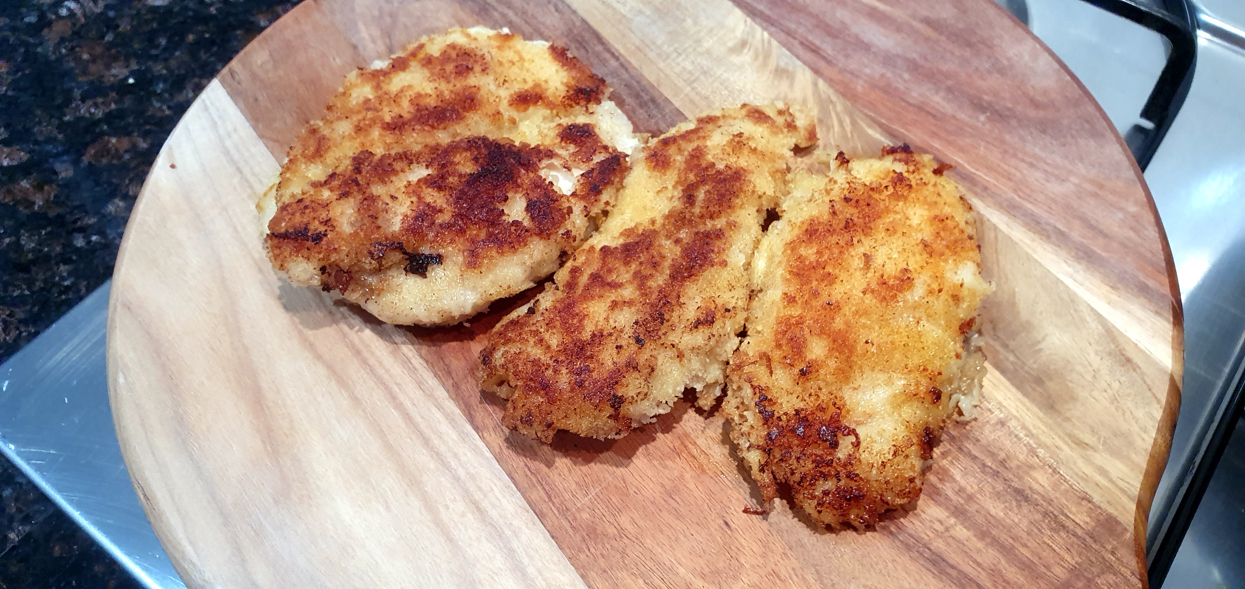 - Reduce the heat and cook the crumbed fillets until they are golden brown and cooked through (~10 minutes each side).
